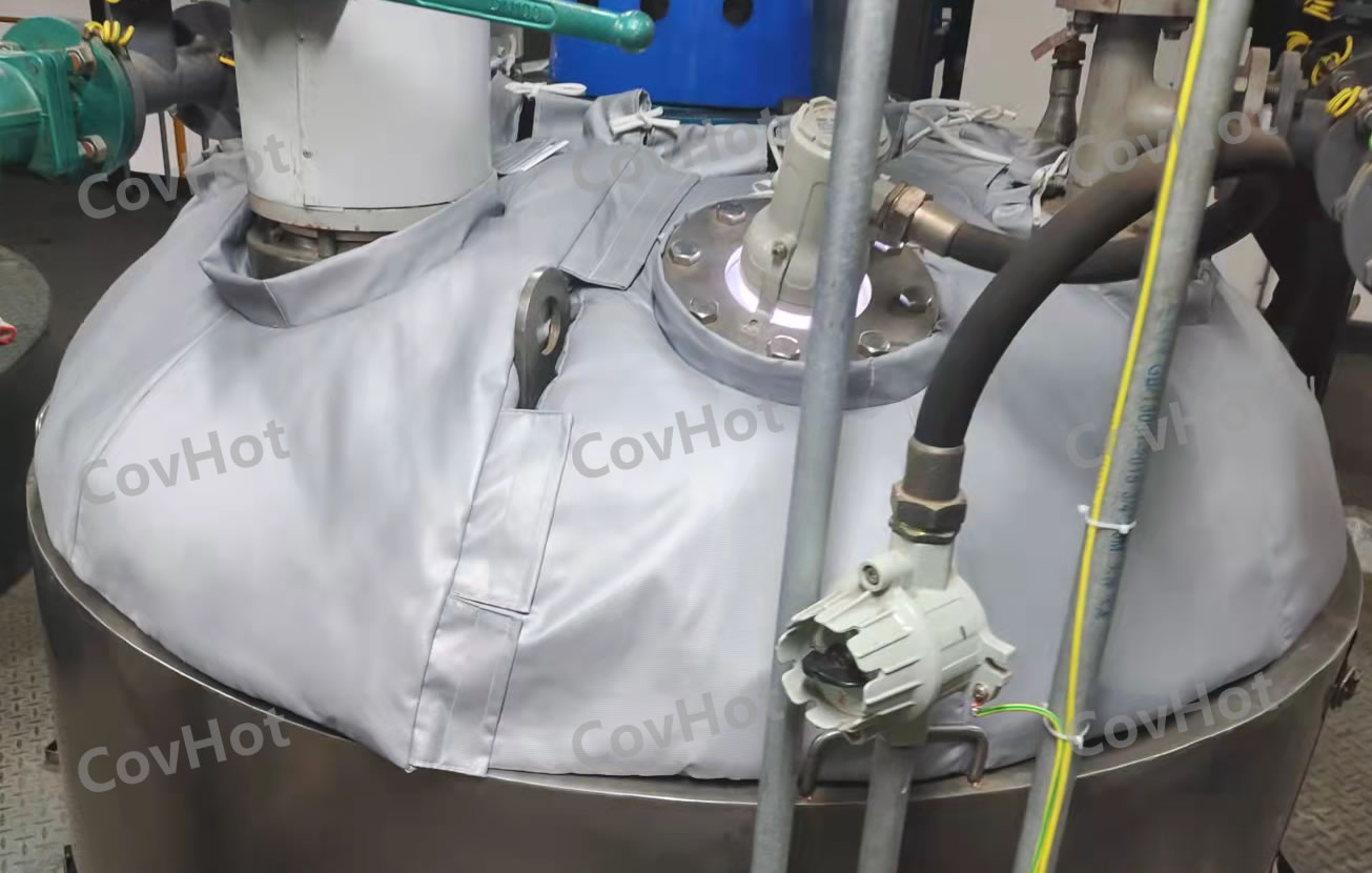 可拆卸柔性反應(yīng)釜保溫隔熱衣具有方便安裝和拆卸,節(jié)約工廠電能,降低經(jīng)濟(jì)成本,使用壽命長,產(chǎn)品經(jīng)久耐用的特點(diǎn)。能夠有效改善工作場所的熱環(huán)境,降低車間溫度。有效提高加工效率,避免等待加溫升溫時(shí)間,保護(hù)人員安全問題,有效避免燙傷。Covhot柔性保溫套在制作時(shí)可以實(shí)現(xiàn)反應(yīng)釜保溫套的量身定制,根據(jù)設(shè)備的使用場景以及設(shè)備保溫需求制定最優(yōu)技術(shù)解決方案。