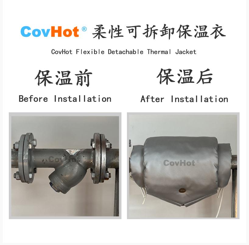 可拆卸保溫套由于其具有柔性可拆卸的特點(diǎn),非常適合需要經(jīng)常檢修、形狀怪異、環(huán)境惡劣的設(shè)備,而且保溫套外表通常采用防水防火、防油污、耐酸堿的材料制成,不僅使用壽命長久,而且美觀大方,有助于提高企業(yè)形象。