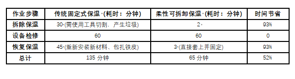 下表對比了處理一個典型高溫閥門在兩種保溫方式下的檢修時間差異。