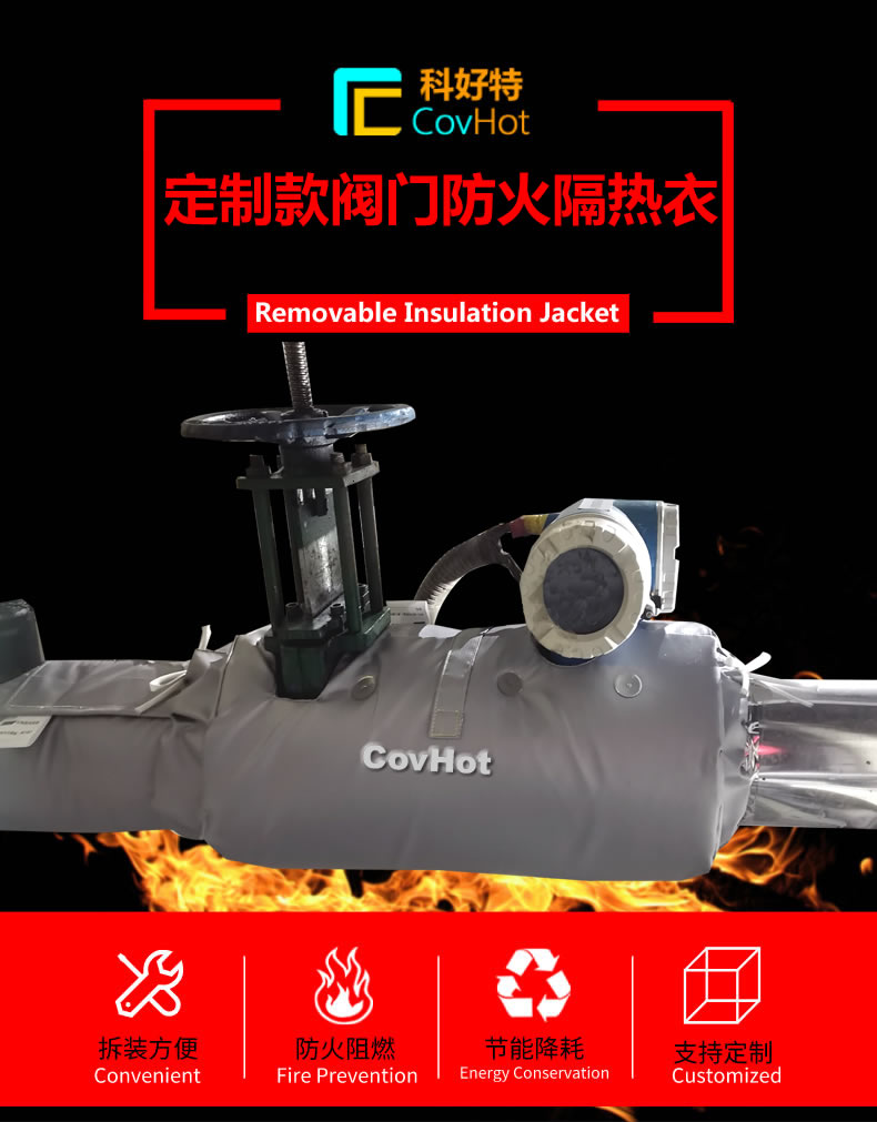 蒸汽閥門保溫是管線保溫工作的薄弱環(huán)節(jié),雖然閥門所占面積不大,但由于保溫效果不理想,其散熱損失不可低估。科好特可拆卸蒸汽閥門保溫套采用非石棉耐高溫布做表層,內(nèi)填充納米纖維,通過高強(qiáng)度耐高溫線制作而成。可以取代大部分傳統(tǒng)的以鋁皮隔熱效果優(yōu)良,拆裝方便,可多次重復(fù)使用等優(yōu)點(diǎn)。