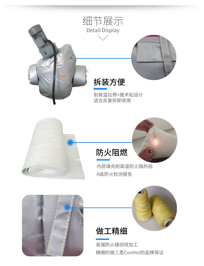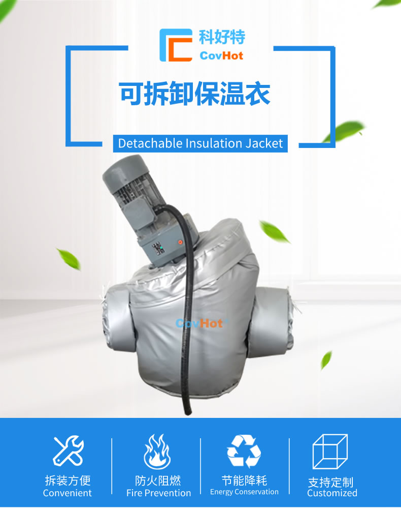 可拆卸式泵體保溫套,也可以叫做泵體保溫衣,泵體保溫罩。可拆卸式泵體保溫套使用耐高低溫、防火保溫材料制作而成,拆卸安裝方便簡單,保溫隔熱性能高。